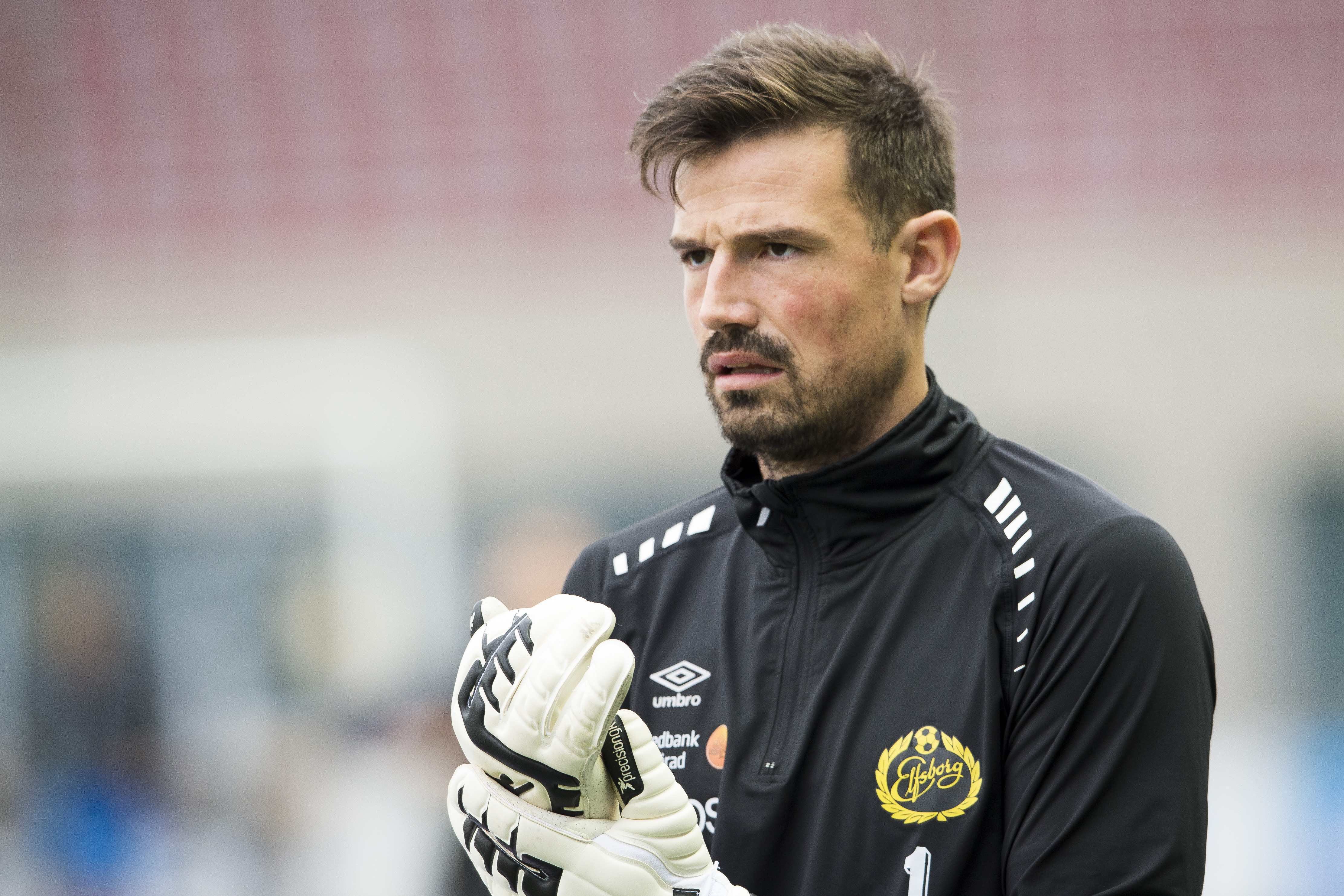 151004 Elfsborgs målvakt Kevin Stuhr Ellegaard under uppvärmningen innan en fotbollsmatch i Allsvenskan mellan Helsingborg och Elfsborg den 4 oktober 2015 i Helsingborg. Foto: Jörgen Jarnberger / BILDBYRÅN / Cop 112