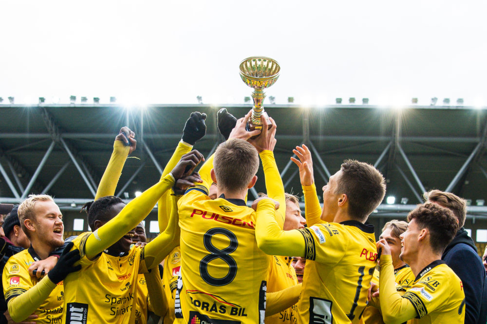 191019 Elfsborgs spelare jublar med pokalen efter vinsten och SM-guld i fotbollsmatchen i U19 Allsvenskan mellan Elfsborg och IFK Norrköping den 19 oktober 2019 i Borås. Foto: Jörgen Jarnberger / BILDBYRÅN / Cop 112