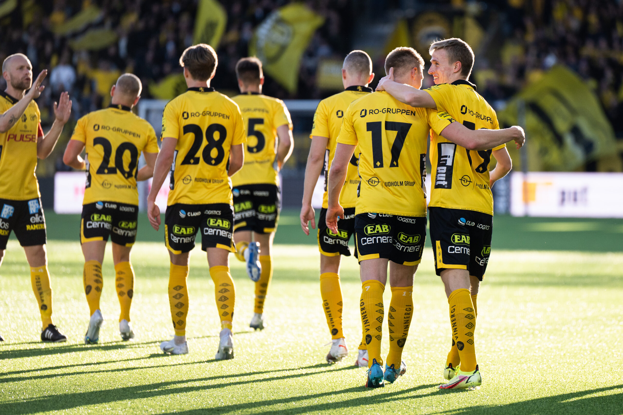 220417 Elfsborgs Jeppe Møldrup Okkels jublar med Per Frick efter 2-0 under fotbollsmatchen i Allsvenskan mellan Elfsborg och Värnamo den 17 april 2022 i Borås. Foto: Jörgen Jarnberger / BILDBYRÅN / COP 112 / JJ0177 Play – Höjdpunkter – IF Elfsborg – Värnamo Publicerad: 2022-04-18 10:02 Nyheter A-laget Herrlag Facebook Twitter LinkedIn