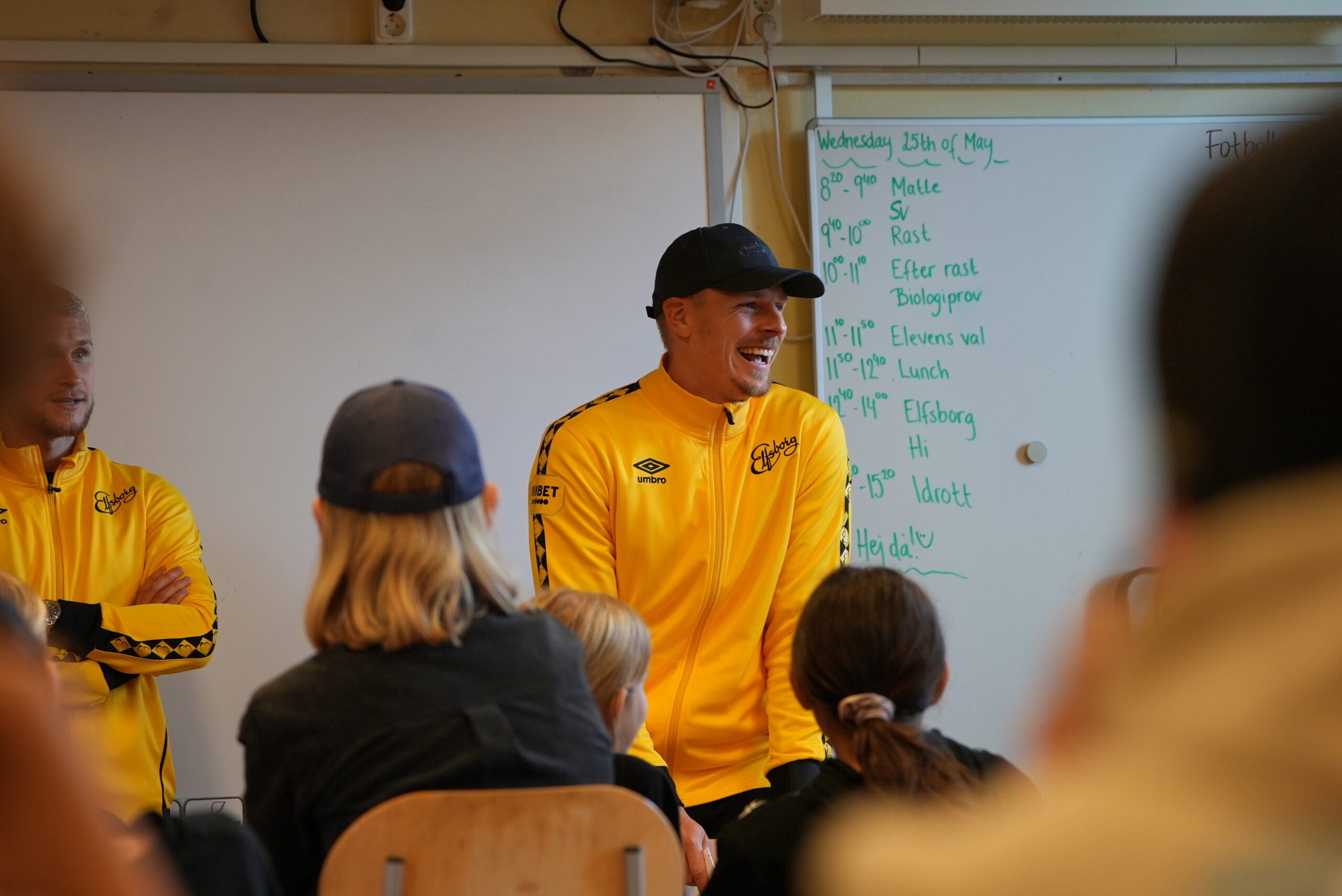 De båda a-lagsspelarna pratade om hur viktigt det är med skolan och utbildning – som ett skyddsnät för att kunna få ett jobb man trivs med efter karriären. Per och Simon pratade också om att alltid ha respekt för lärare och tränare. Att vara en bra kompis och att respektera och hjälpa sina klasskompisar och lagkamrater.
