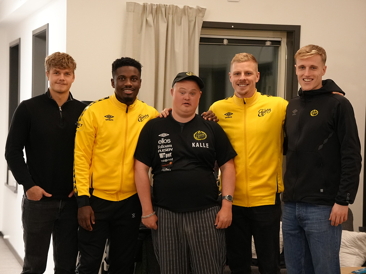 Efter det traditionsenliga besöket på SÄS lekterapi väntade ett besök på Teknikgatan, och ett gruppboende för människor med funktionsnedsättning. Här fick Per Frick, Michael Baidoo, Jeppe Okkels och Kevin Holmén bjuda på fika och överraska Carl-Fredrik som är ett stort Elfsborgsfan.