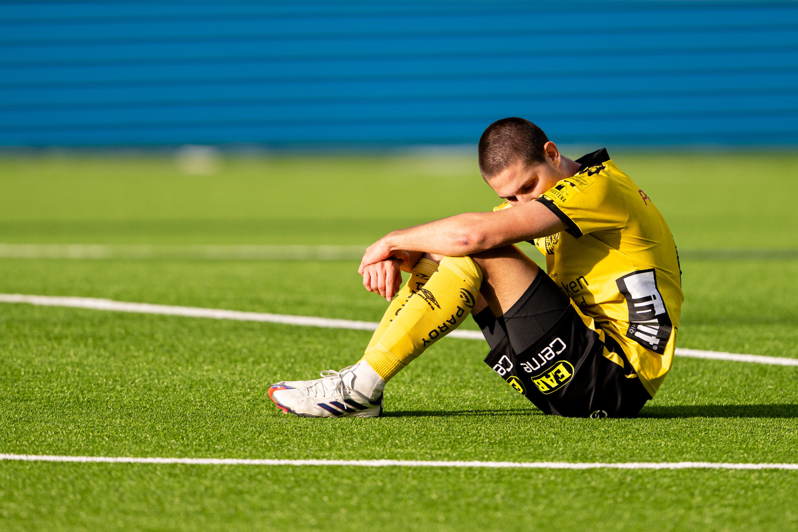 250824 Elfsborgs Rasmus Wikström deppar efter fotbollsmatchen i Allsvenskan mellan Elfsborg och Halmstad den 24 augusti 2025 i Borås. Foto: Jörgen Jarnberger / BILDBYRÅN / COP 112 / JJ0511